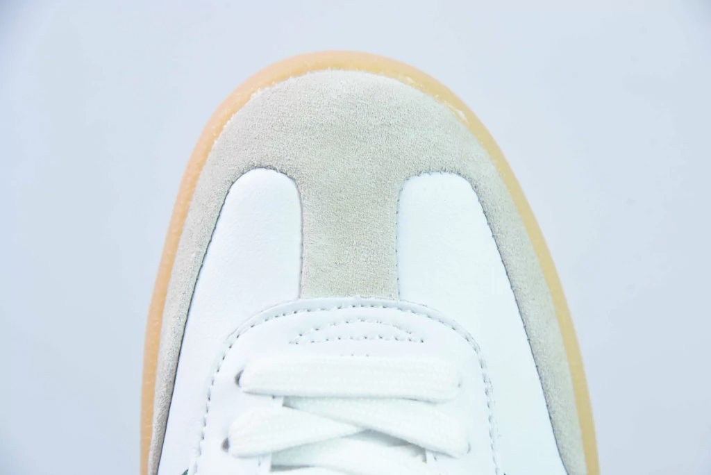 O adidas Sambae White Collegiate Green Gum reinventa a silhueta do Sambae com uma combinação de cores inspirada no time universitário de Crisp White com detalhes em Collegiate Green.